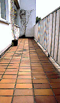 Welcher Hausbesitzer oder Mieter kennt nicht die ewigen Probleme mit den undichten Balkon- und Terrassen - Fußböden? Diese Undichtigkeiten treten praktisch generell bei allen Balkon- und Terrassen - Belägen aus bisher bekannten Materialien auf. Da sind es z. B. plattierte Bodenflächen, wo es häufig im Fugenbereich zu Spannungsrissen kommt, Wasser eindringen kann und dadurch zu Undichtigkeiten führt. Auch bei Gußasphalt - und Zementestrich - Böden kommt es durch starke Sonneneinstrahlung und nächtliches Abkühlen der Flächen immer wieder zu Spannungen und Rißbildungen. All diese Flächen können nun mit einem hochelastischen, aber dennoch stark strapazierbaren und rißüberbrückenden Flüssigkunststoff abgedichtet werden. Der große Vorteil dieses bereits auf vielen tausend Quadratmetern bewährten Produktes liegt darin, daß man hiermit erstmalig die Möglichkeit hat, bei vorhandenen Platten- und Fliesen-Untergründen mit dem transparenten, also vollkommen durchsichtigen Material, derartige Beläge zu überziehen, so daß der eigentliche Platten- und Fugen-Charakter voll und ganz erhalten bleibt. |